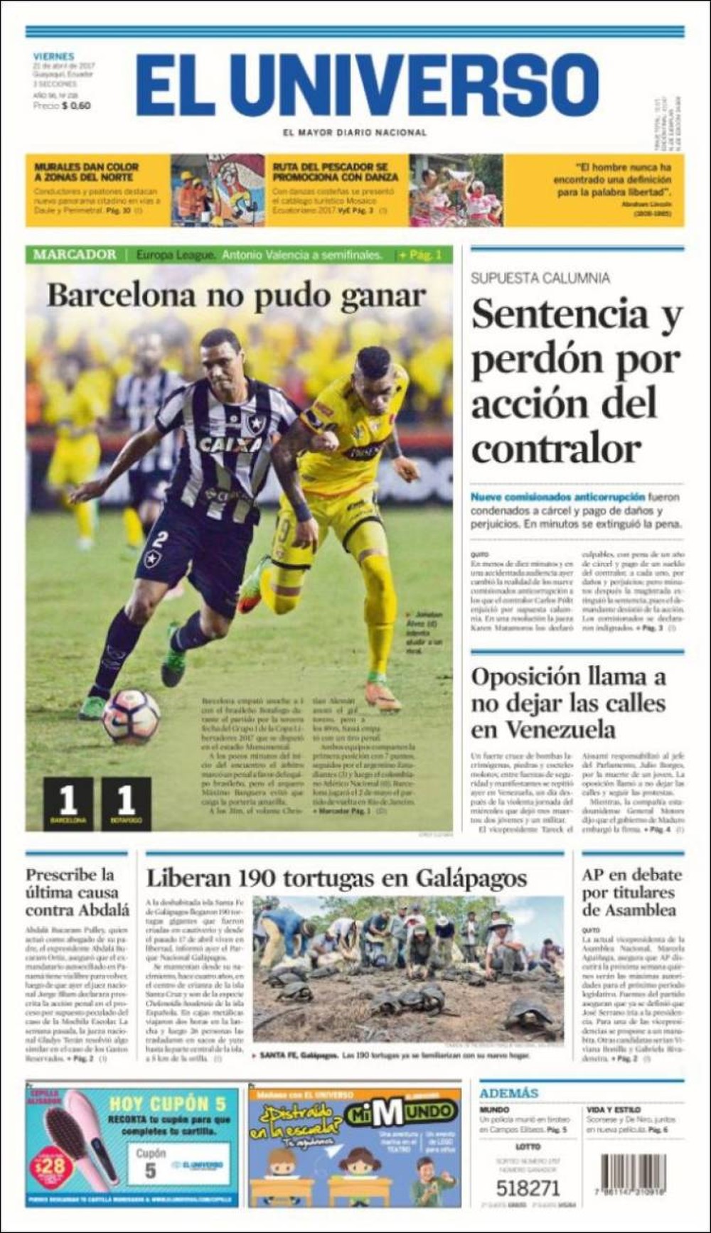 brasileiros, os jornais equatorianos desta sexta-feira lamentaram a